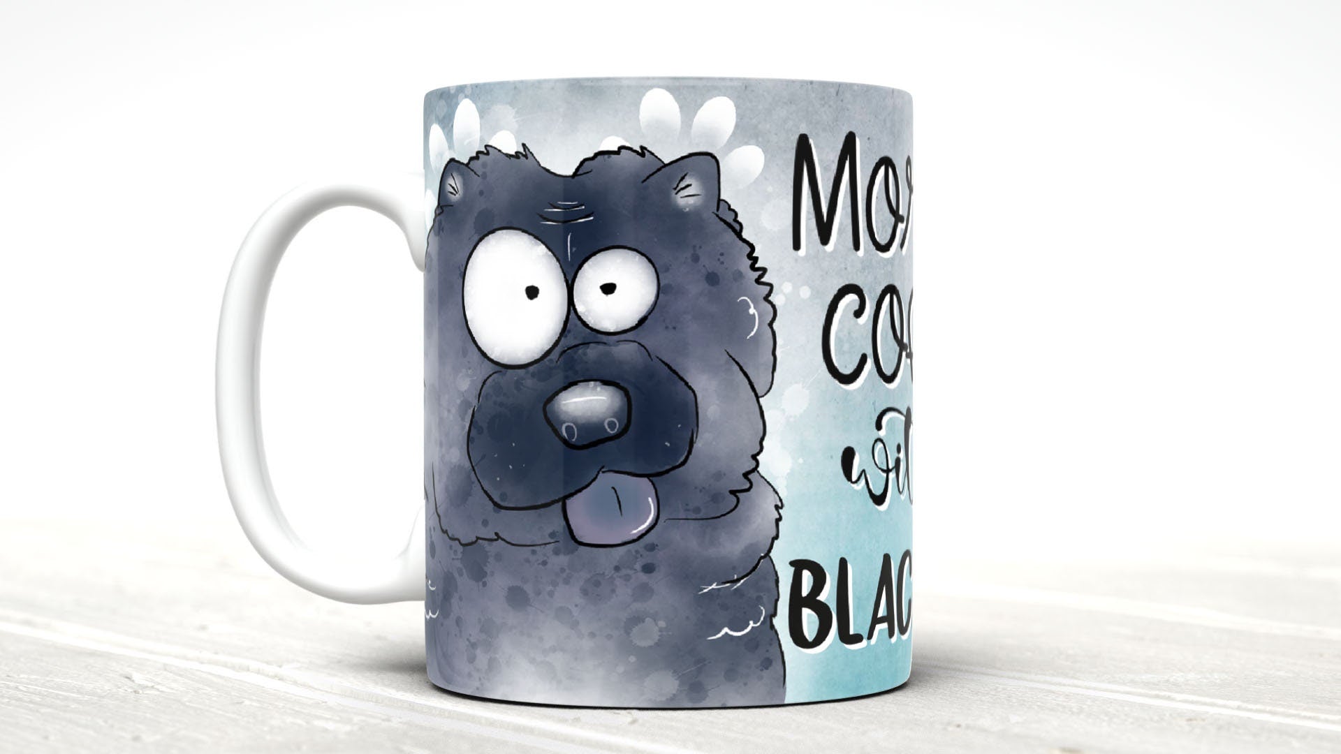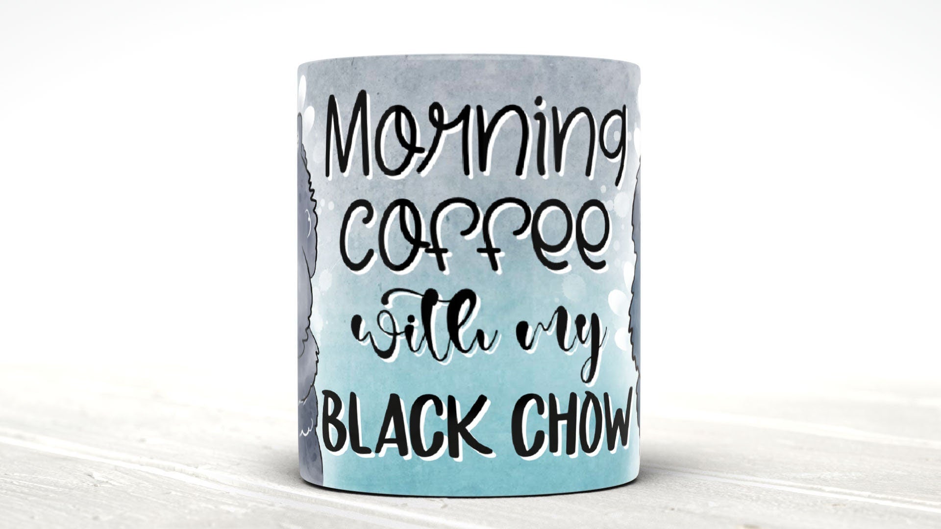 Morning Coffee With My Black Chow Cute Cartoon Doggy Mug Perfect Gift For Him Her Mum Dad Nan