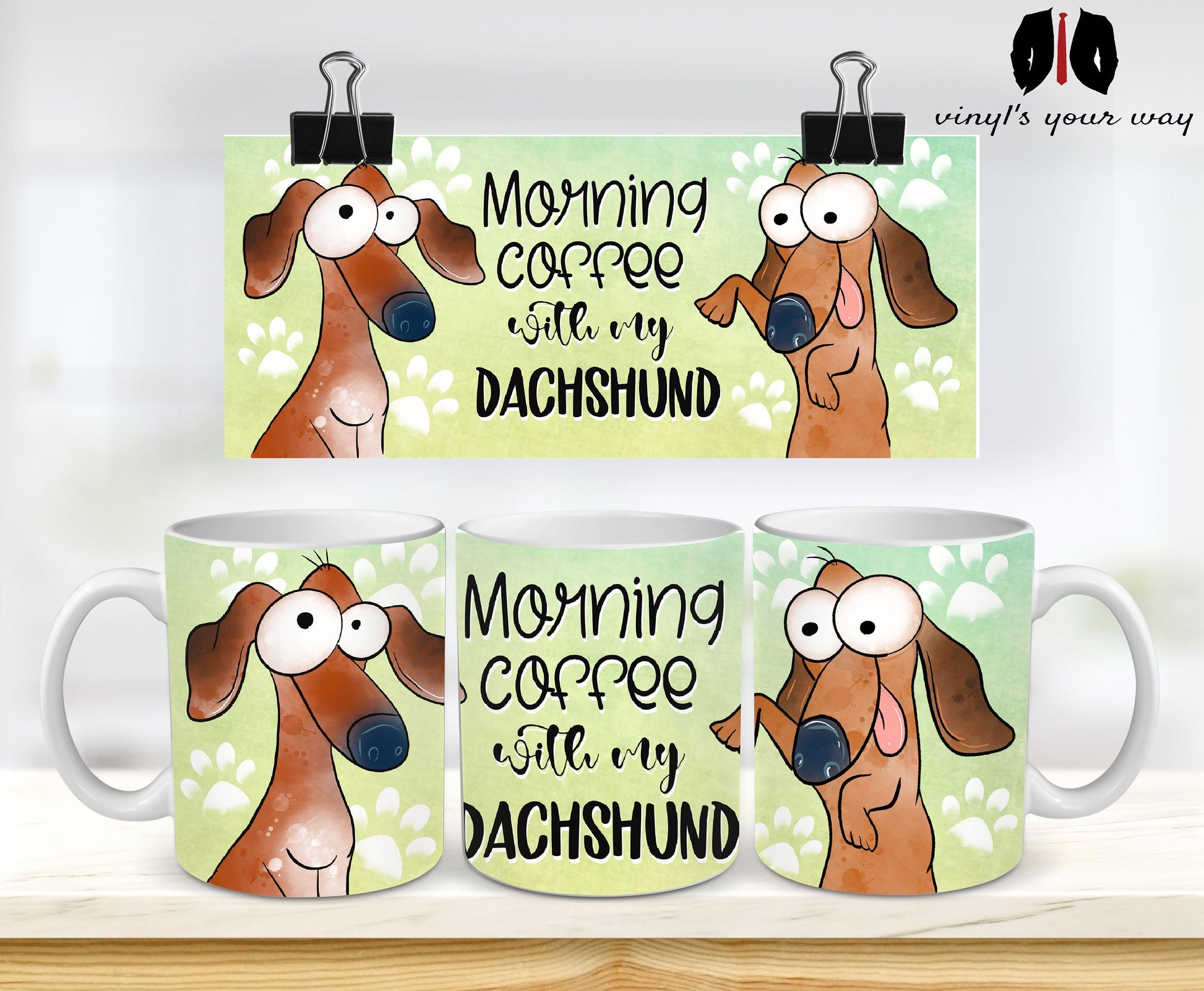 Morning Coffee With My Dachshund Cute Cartoon Doggy Mug Perfect Gift For Him Her Mum Dad Nan
