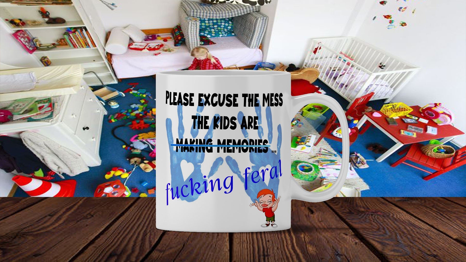 Please Excuse The Mess Funny Mug Kids Making Memories Gift For Mum Dad